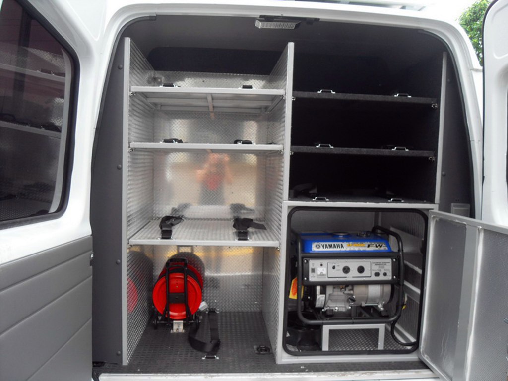 勘察车采用全顺系列客车底盘,依据GA/T 799-2008《现场勘查车技术条件》设计而成,整车集现场勘查、取证、专网通讯、移动办公、数据传输、现场实时图像监控、强光照明、供电及现场勘查等功能于一体的多功能警务用车。主要功能包含现场保护、勘查